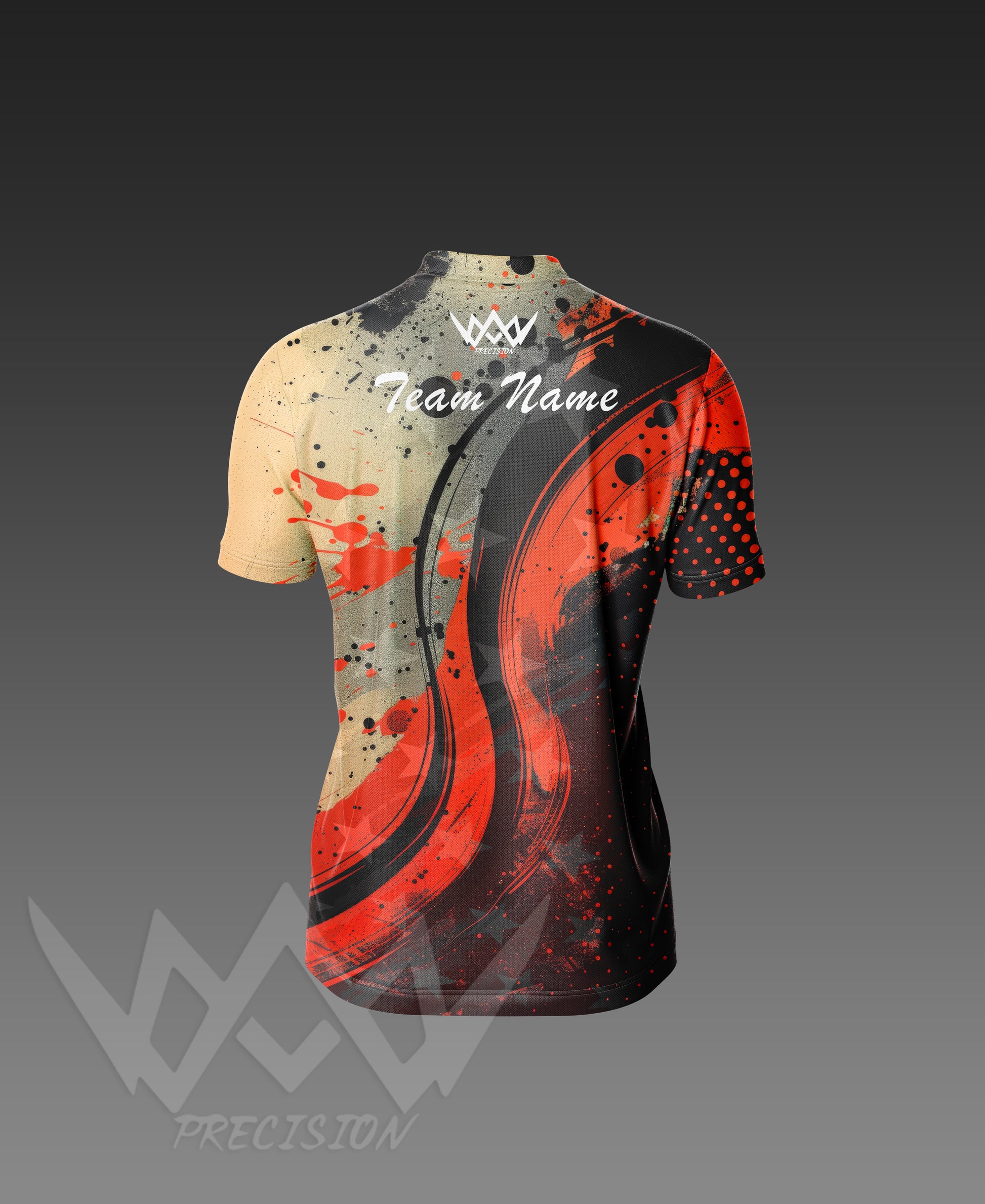 Built for competitors who thrive under pressure, the Precision Apex Series Design 5 Jersey combines rugged style with elite performance. Its bold mix of sandstone tan, deep black, and fire red creates a striking visual flow that captures both grit and control — a true statement piece for players who command respect at the table.