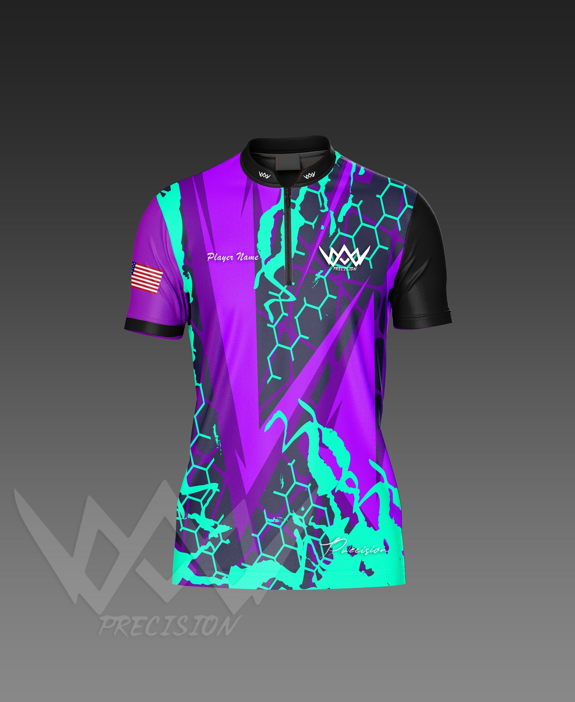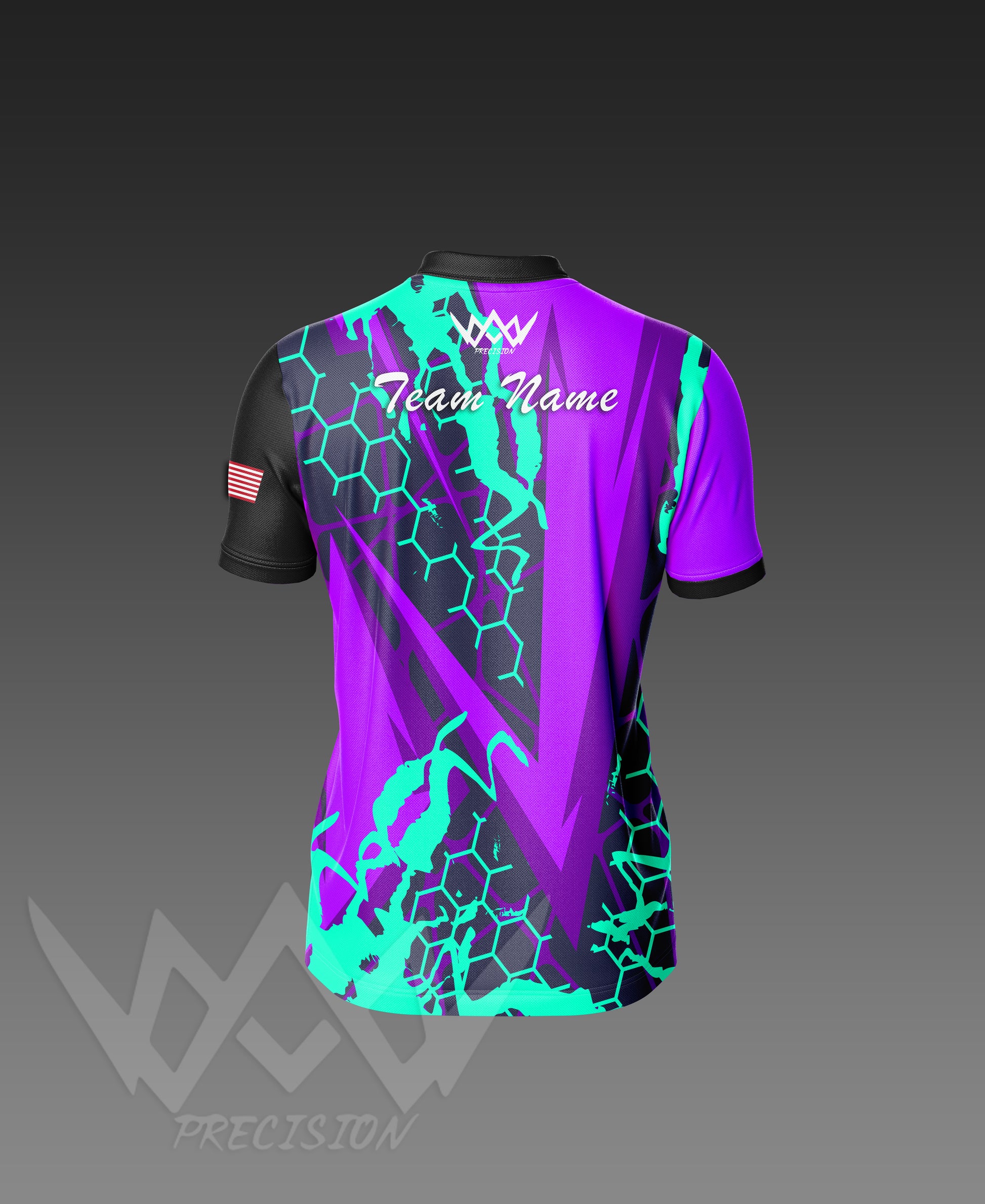 Striking from all angles. The Venom Fade jersey blends a venomous teal web pattern with a deep violet base, split by a razor-sharp slash down the front. It’s aggressive, it’s bold, and it doesn’t miss. Crafted for comfort with breathable stretch fabric, and customized with your name and team.