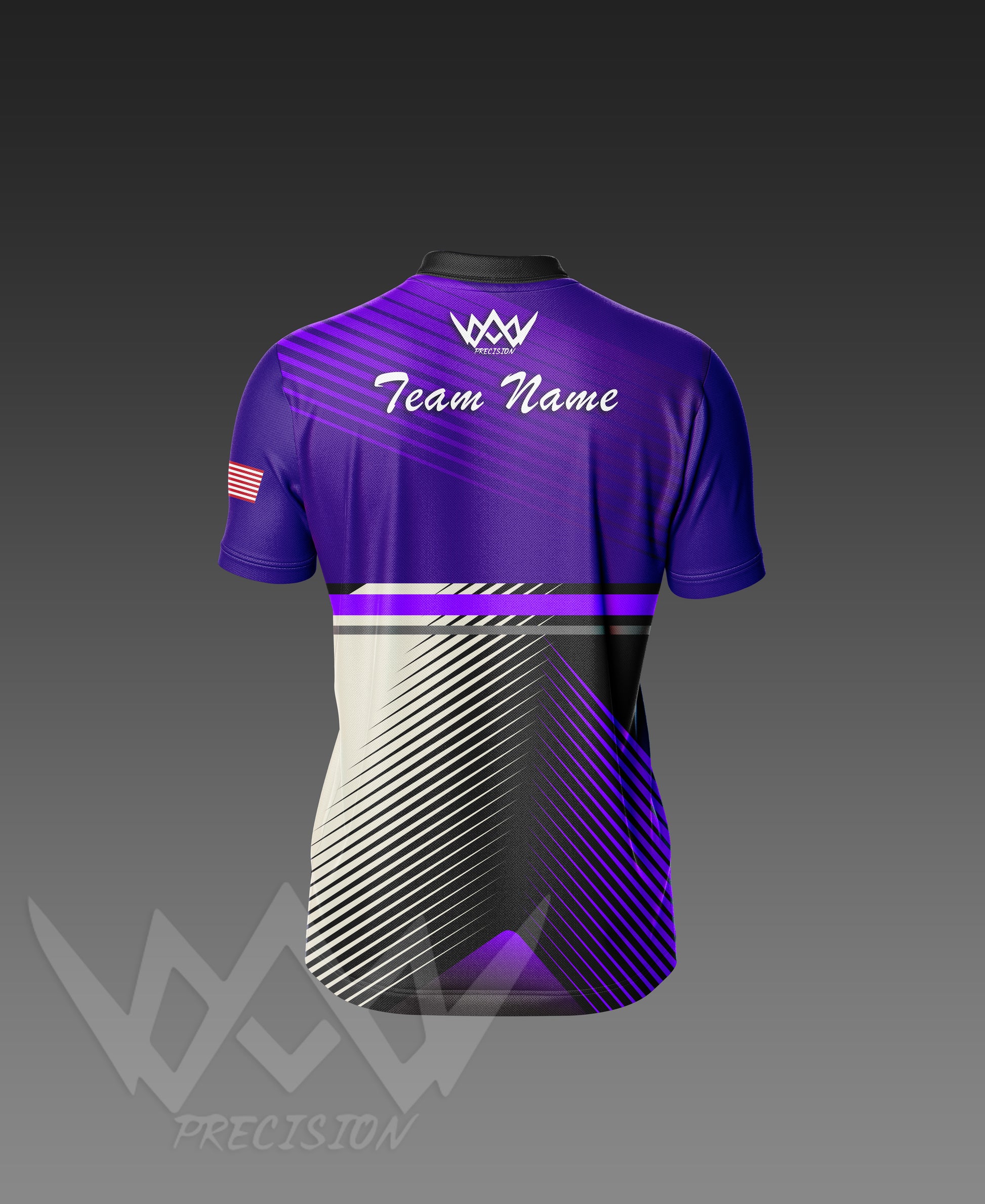 The Strike Series 4 Jersey makes an impact with its deep purple base, sharp diagonal striping, and bold black-and-white contrasts. Clean geometric lines create a sense of movement and strength, giving this jersey a modern edge that’s perfect for competitors who like to command attention at the table.
