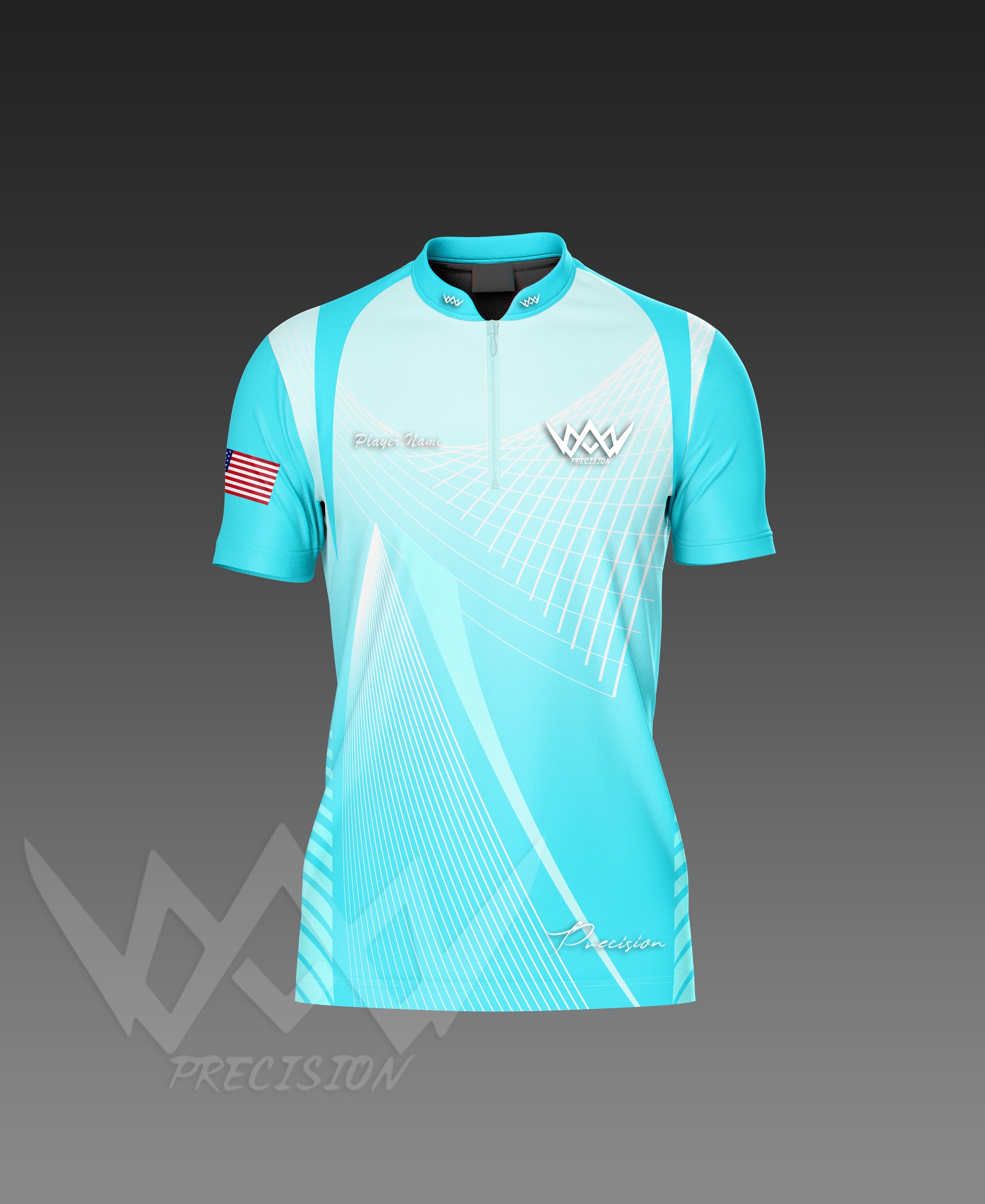 Crafted from lightweight, breathable, moisture-wicking fabric, it’s designed to keep you cool and comfortable in every match. Finished with the Precision crown logo, U.S. flag patch, and your custom name for a professional edge.